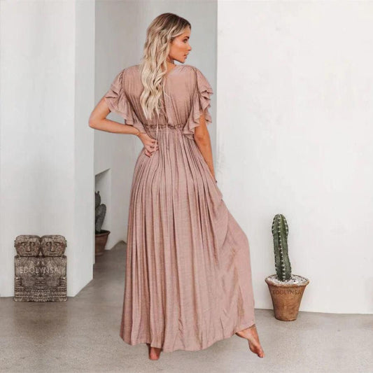 AanbiedingValeria | Taupe Maxi Boho Dress