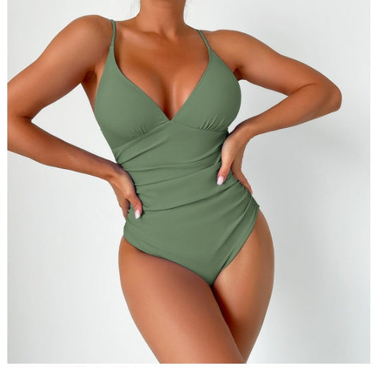 AanbiedingVeda | Plain swimsuit with deep Vneck