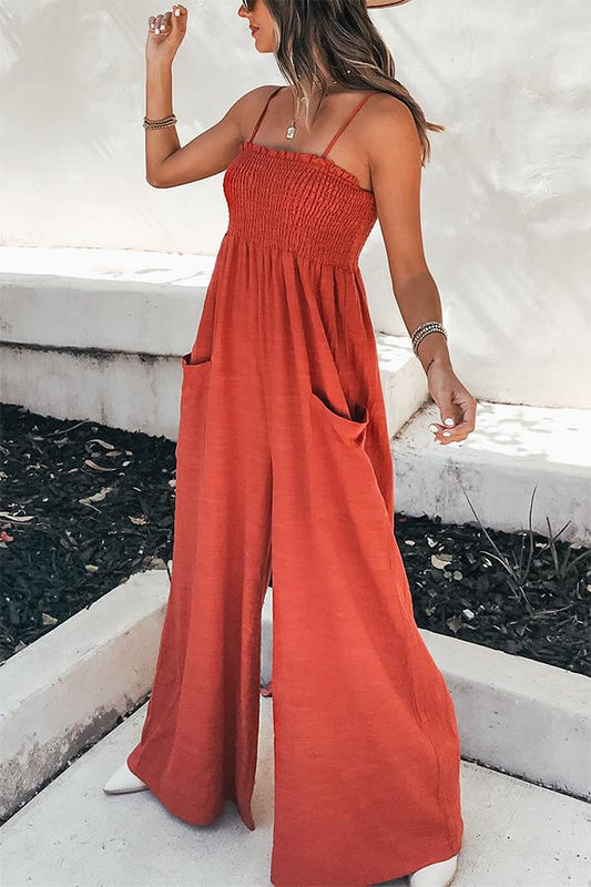 AanbiedingVerónica | Solid color casual gauze jumpsuit