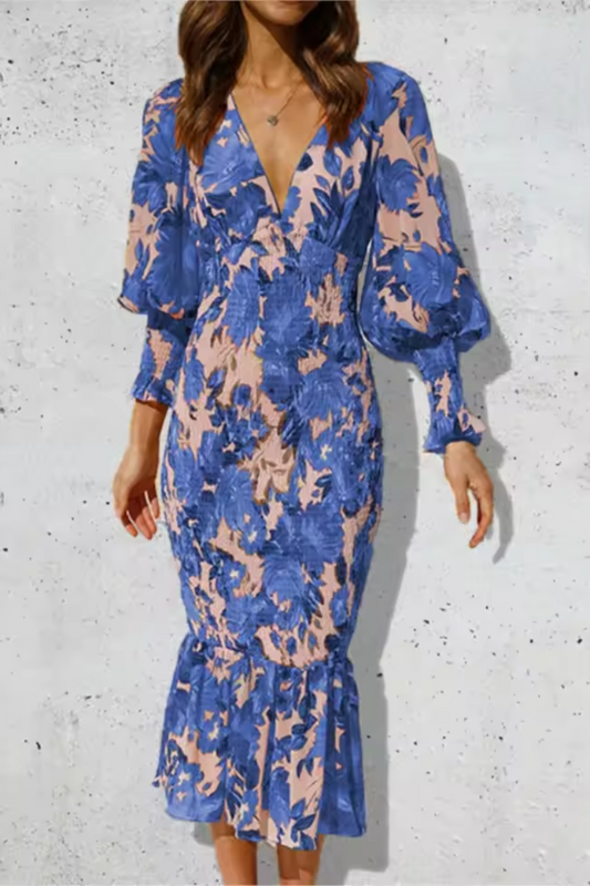 Willemijn | Women's printed dress with Vneck and fishtail hem