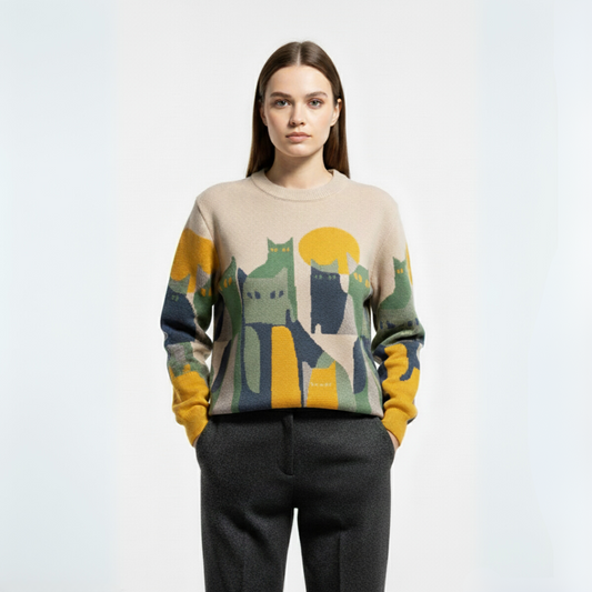 Willa | Unisex jumper with cat print, stylish and comfortable