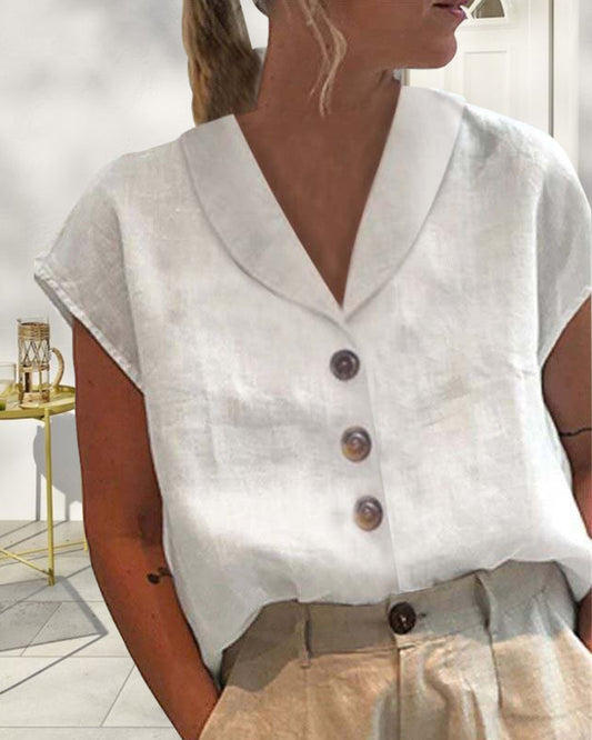 Winnie | Short dress with Vneck, puff sleeves and button closure