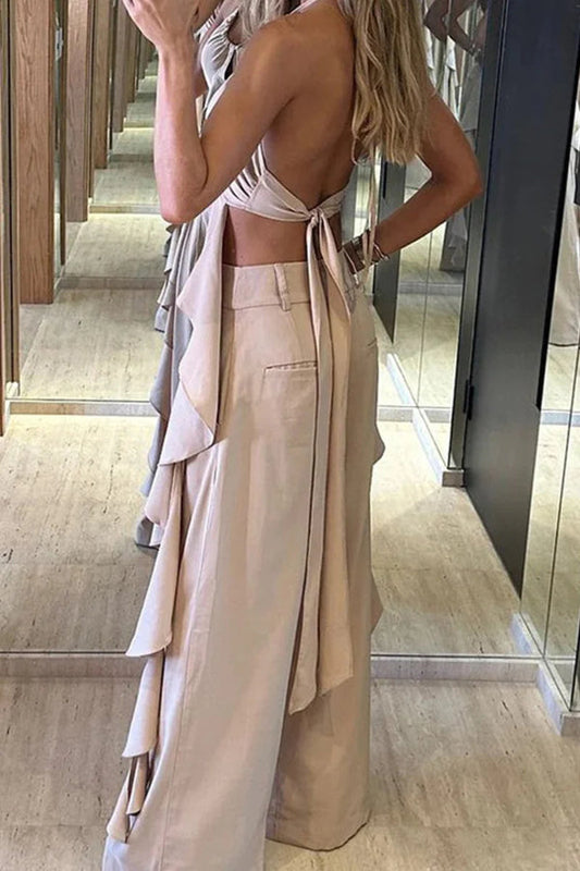 Adara | Sexy, solid color, backless, flounce, scoop neck, sleeveless, two piece
