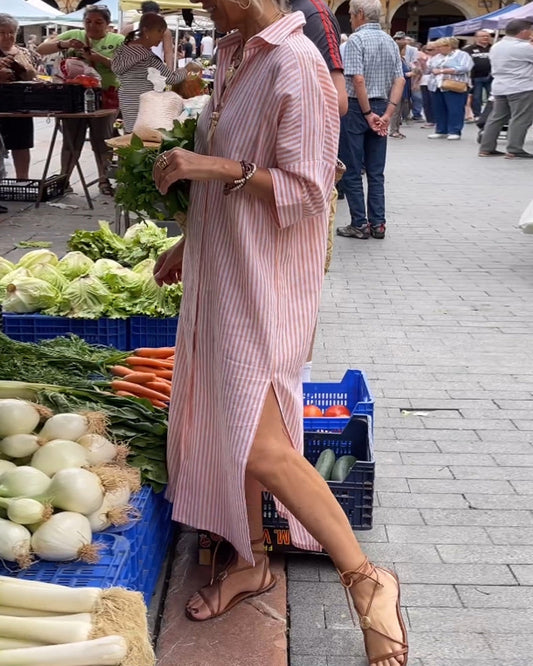Teresa | Striped casual dress with cuffs and slits
