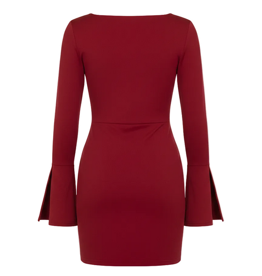 Nauwsluitende rode mini jurk met vierkante hals voor dames